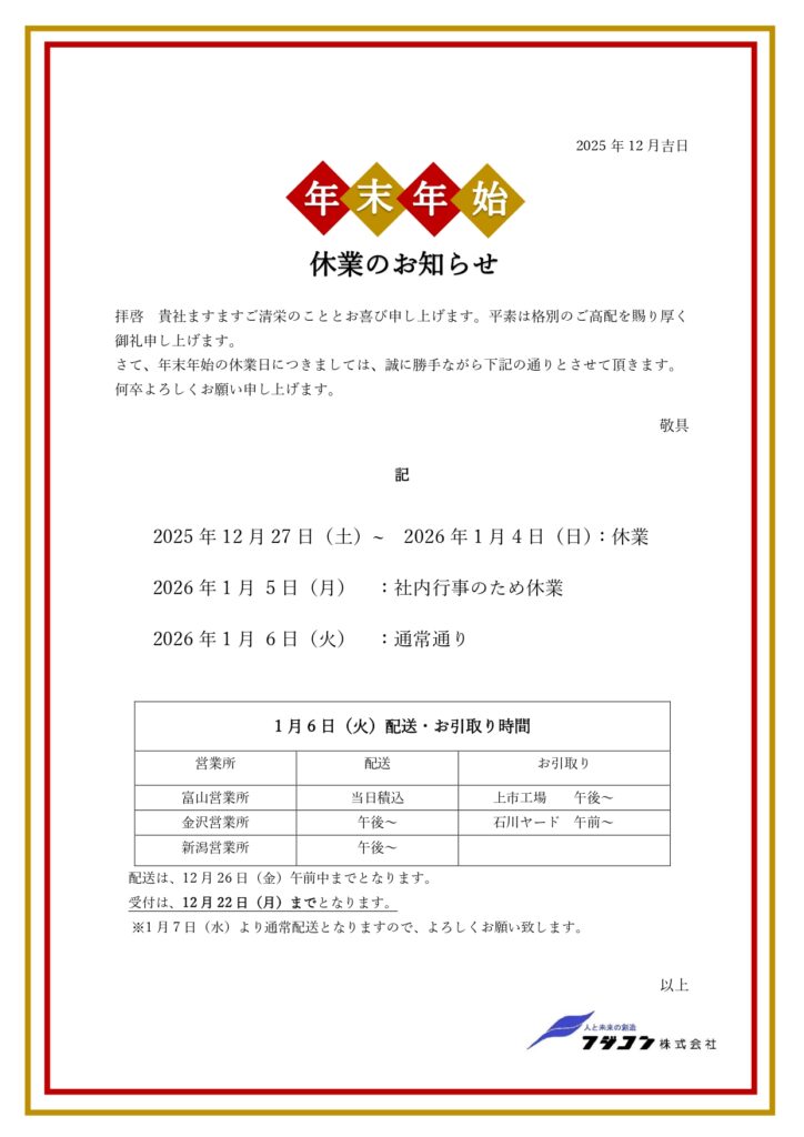 ❁年末年始休業のお知らせ❁